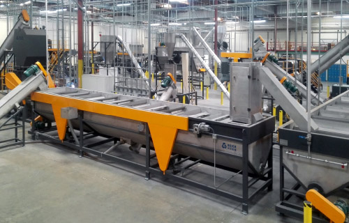 PE flake floating tank & screw conveyors