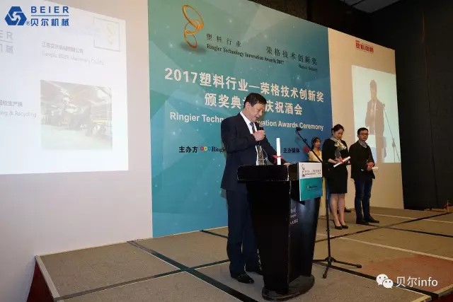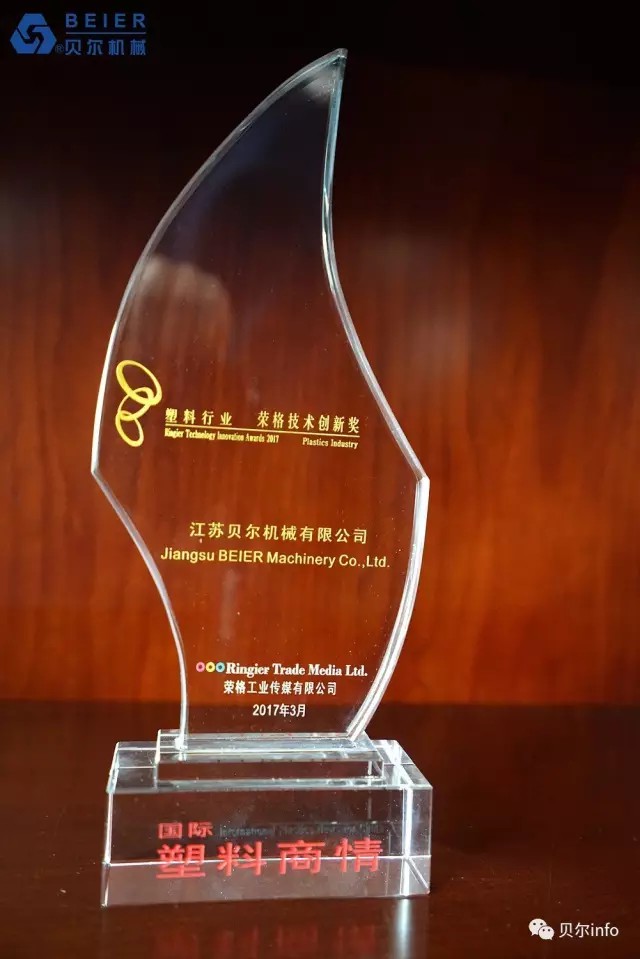 江蘇貝爾機(jī)械6000KG/H PET清洗回收生產(chǎn)線榮獲 2017榮格技術(shù)創(chuàng)新獎(jiǎng)。榮格工業(yè)傳媒總裁馬國熙先生致辭時(shí)提到的:"今年所有的獲獎(jiǎng)產(chǎn)品都是實(shí)至名歸,有些技術(shù)成功填補(bǔ)了國內(nèi)市場(chǎng)的空白;有些技術(shù)極大優(yōu)化了傳統(tǒng)加工工藝技術(shù),從而表現(xiàn)得更加節(jié)能和高效;還有些技術(shù)在高性能和環(huán)保方面有杰出表現(xiàn)……所有的獲獎(jiǎng)產(chǎn)品都是優(yōu)中選優(yōu),而且今年的報(bào)名產(chǎn)品尤為注重在具體應(yīng)用領(lǐng)域的創(chuàng)新"。