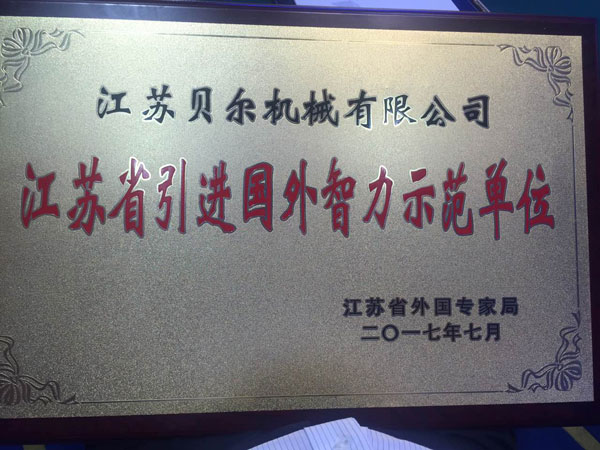 今日,江蘇貝爾機械獲得了由江蘇省外國專家局授予的 江蘇省引進國外智力示范單位 稱號。"中國的快速發(fā)展,及國家對科學研究的重視,使中國逐漸開始成為全世界科學家向往的國度,"國家外國專家局局長張建國說。