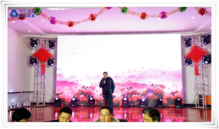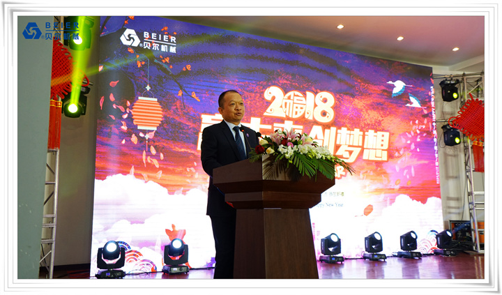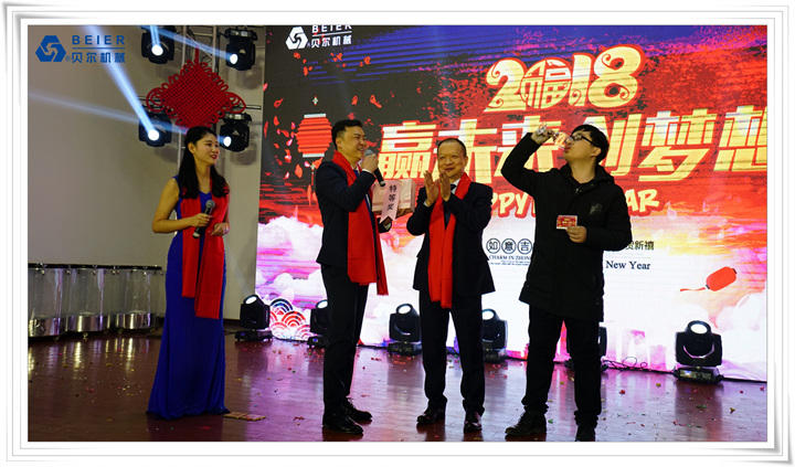 在表演開始前,董事長(zhǎng)何德方致以新春致辭,他慷慨激昂地回顧了公司2017年取得的輝煌戰(zhàn)績(jī)一一感謝公司全體員工、各部門的辛勤付出,并展望2018年發(fā)展規(guī)劃,公司將繼續(xù)開拓創(chuàng)新,整合資源,所有貝爾人要攜起手來,為實(shí)現(xiàn)公司更高的目標(biāo)而奮斗!得到了全體員工的熱烈掌聲!在喜慶的祝酒音樂伴奏下,何董事長(zhǎng)舉杯向所有同事和來賓祝酒,新春晚宴在一片熱鬧喜悅的氣氛中正式開始。員工代表清洗組:楊愛萍進(jìn)行了發(fā)言,她作為參與者,見證了貝爾機(jī)械二十年來的蓬勃發(fā)展,反映了貝爾自下而上的實(shí)干精神已經(jīng)成為貝爾的企業(yè)文化。