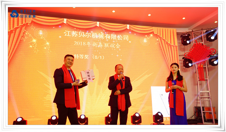 在這個(gè)辭舊迎新的時(shí)刻,江蘇貝爾機(jī)械集團(tuán)2018年新春晚會(huì)于201823日晚在公司禮堂隆重舉行。江蘇貝爾機(jī)械及星貝爾全體員工以及特邀嘉賓三百余人參加了本次盛會(huì)。晚會(huì)上,由各部門員工精心準(zhǔn)備的節(jié)目精彩紛呈,公司高管與員工親切互動(dòng)、激動(dòng)人心的抽獎(jiǎng)活動(dòng),讓歌聲、掌聲、歡呼聲一直在會(huì)場(chǎng)上蕩漾。整場(chǎng)晚會(huì)高潮迭起,呈現(xiàn)出貝爾大家庭的歡樂和諧。