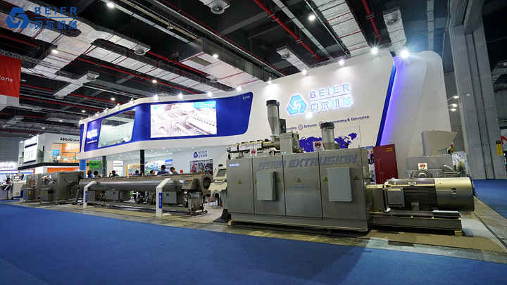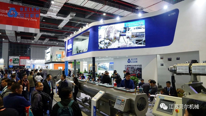 此次參展,江蘇貝爾機(jī)械依舊是兩個(gè)展位,貝爾機(jī)械在6.1館T01展位以及星貝爾在8.1館L67展位, 其中貝爾機(jī)械展示了3層共擠智能石油管生產(chǎn)線,目前環(huán)保態(tài)勢(shì)下關(guān)注度高的PP/PE軟料團(tuán)粒造粒系統(tǒng),以及配混設(shè)備部件。而星貝爾展示了全自動(dòng)智能吹瓶系統(tǒng),并且現(xiàn)場(chǎng)實(shí)際開機(jī)操作。