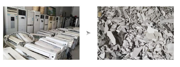 用于回收的廢舊家用電器塑料殼如電視、冰箱、空調(diào)等硬質(zhì)塑料方面的破碎、清洗、回收作業(yè)。根據(jù)硬質(zhì)塑料的特性((ABS/HIPS/PP)),有針對性的對廢舊家電類塑料進(jìn)行設(shè)計回收解決方案。從成本、產(chǎn)量以及生產(chǎn)工藝方面為用戶提供多種破碎清洗,造粒等完善的回收方案。